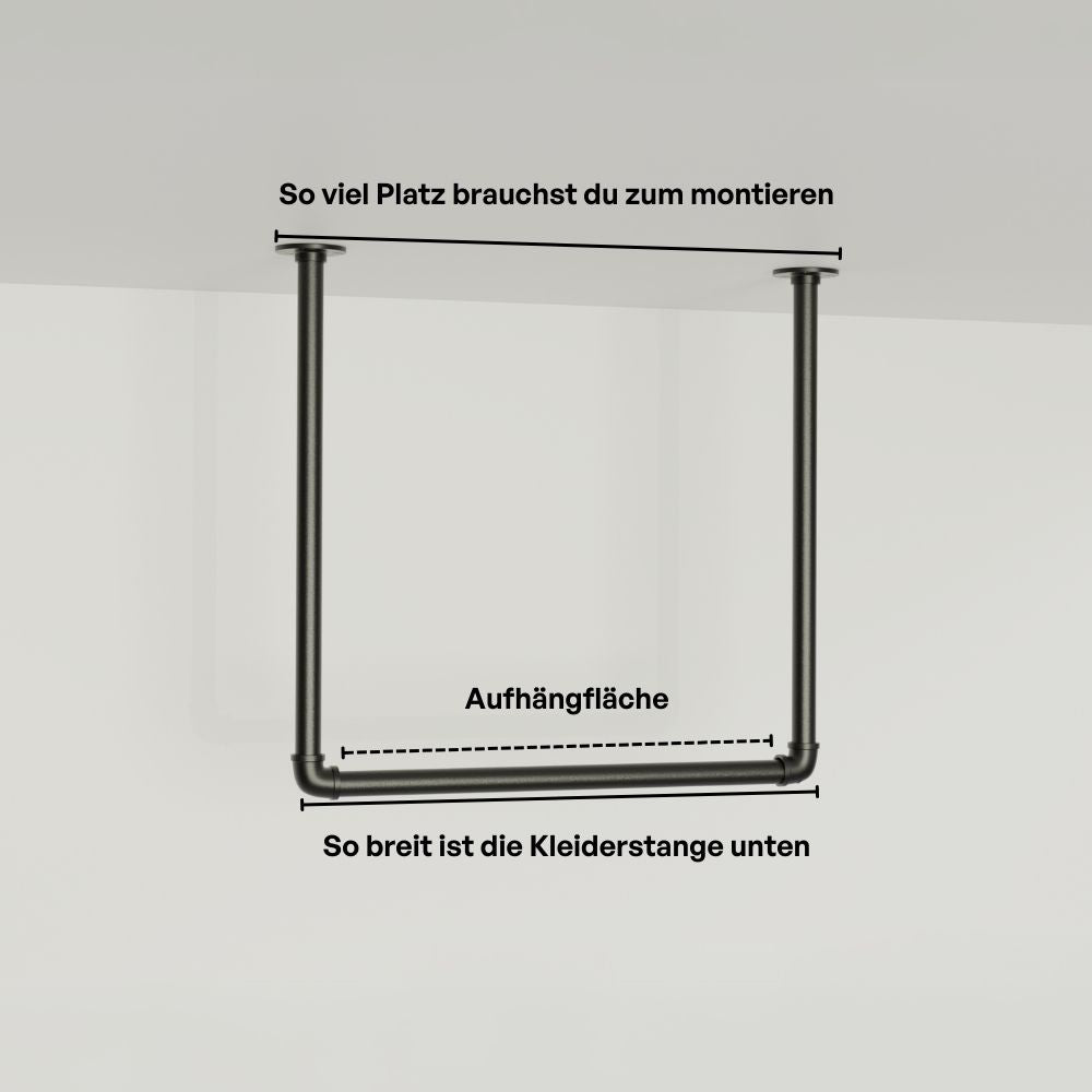 sich auch in schmalen Wohnungen ein, gerade im Flur. So kannst du einfach ein Schuhregal drunter stellen. In unseren Kunden Fotos siehst du auch kreative Ausführung, in denen die Kleiderstange im Flur an der Decke hängt und darunter eine Kommode steht.
