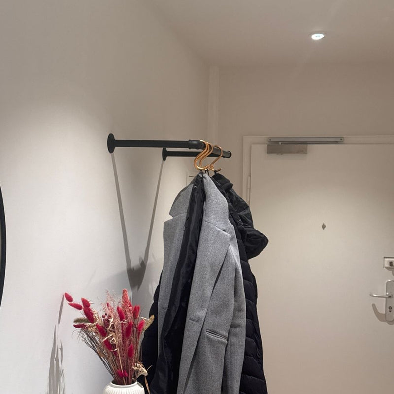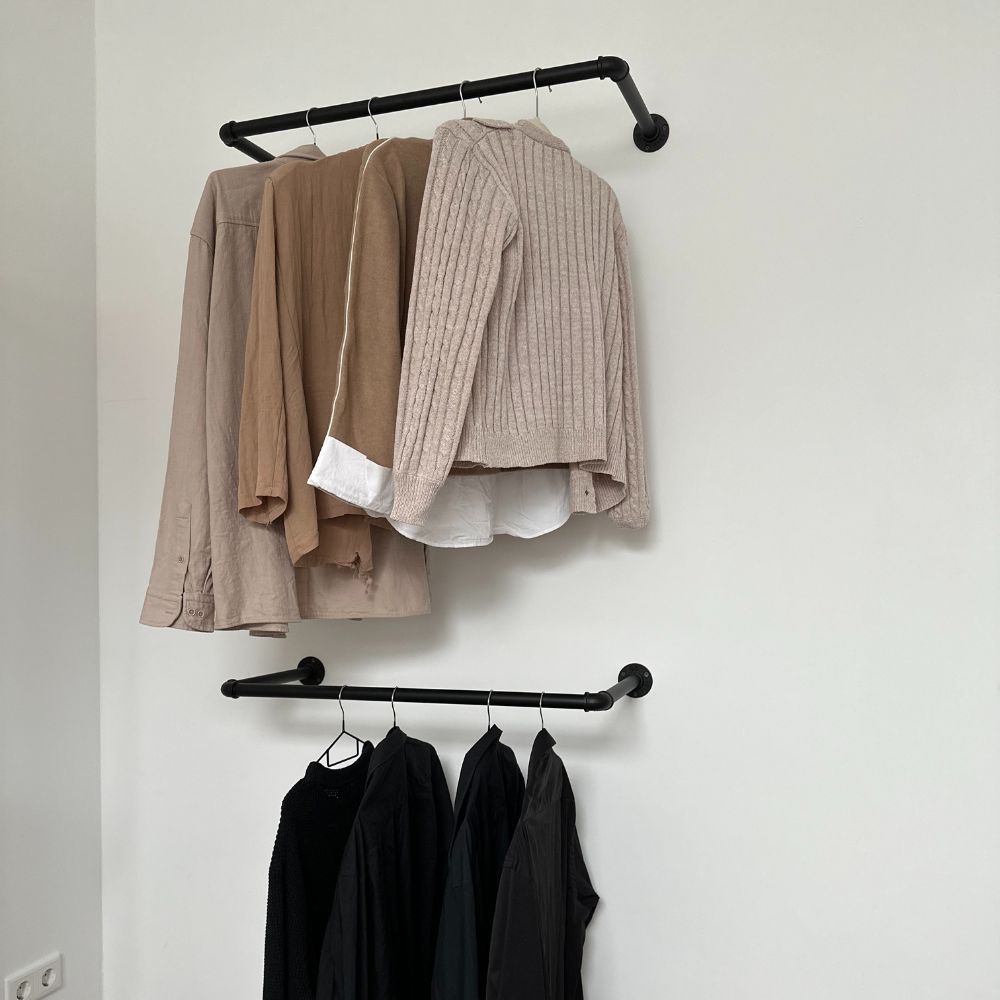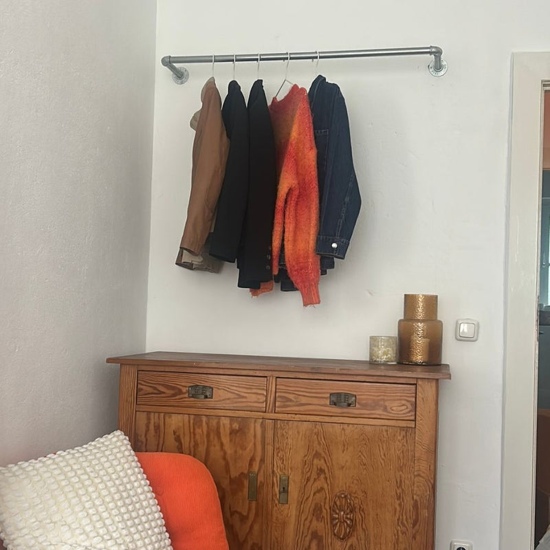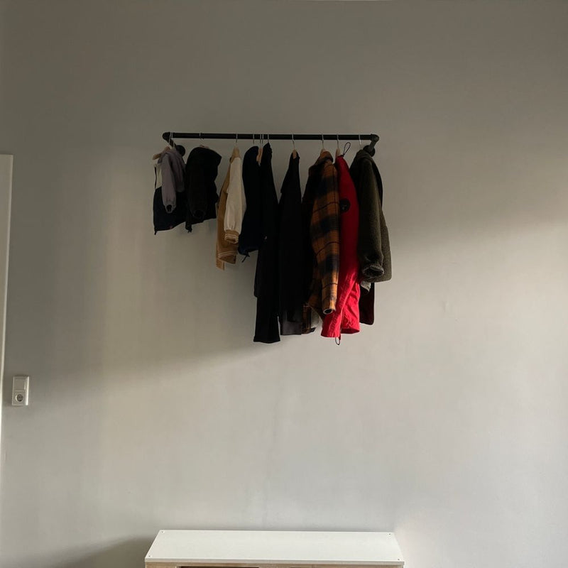 Durch die Wandmontage nimmt KASPAR sehr wenig Platz ein lässt Dich Deinen verfügbaren Raum optimal nutzen. Wenn du eine Übersicht über unsere Kleiderstangen brauchst, schau dir hier jede Kleiderstange an.
