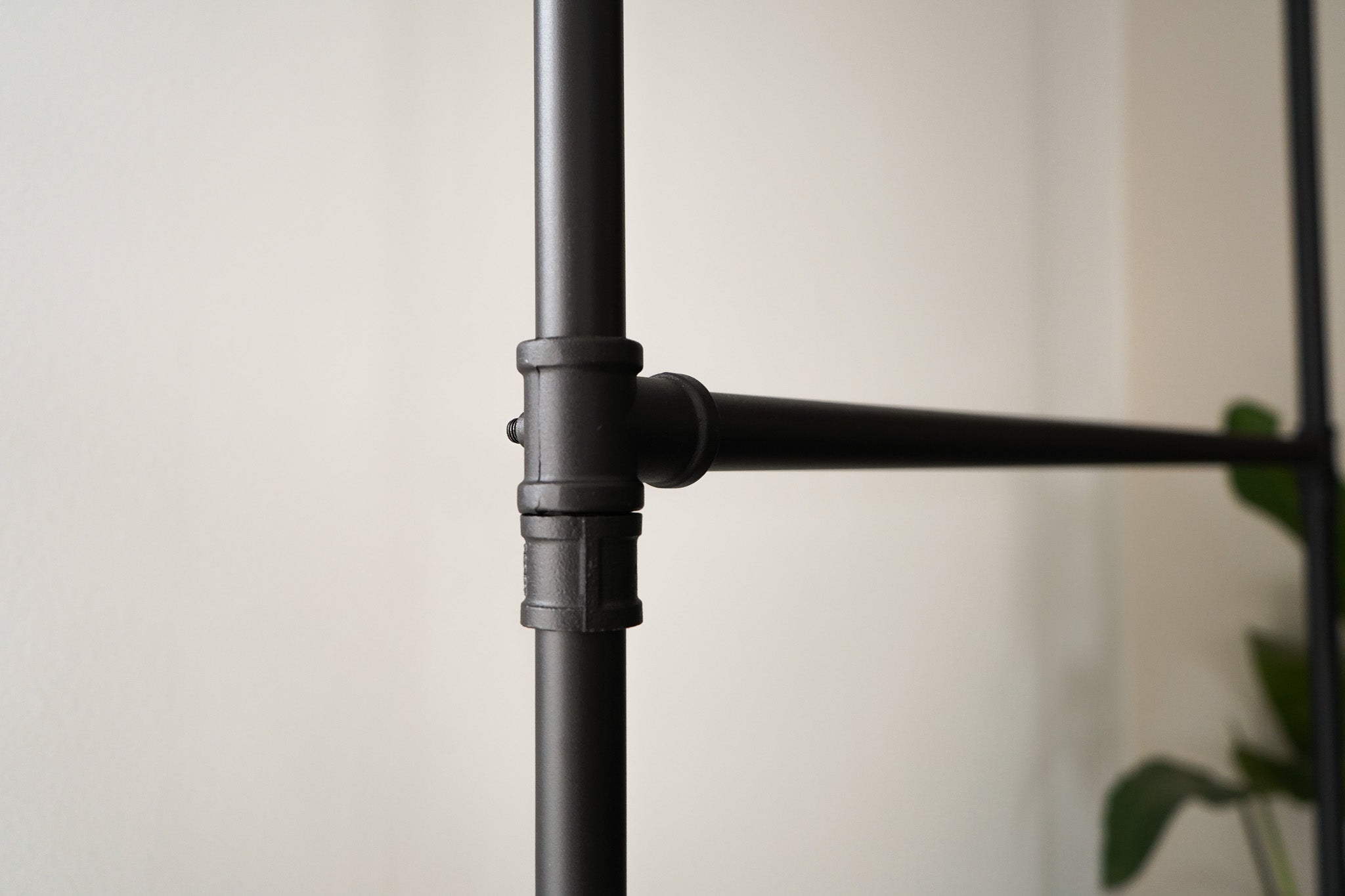 Ein Besuch im Baumarkt brachte uns auf die Idee, eine Garderobe aus industriellen Wasserrohren zu bauen. Was zunächst nach der perfekten und stylischen Lösung klang, entpuppte sich schnell als Albtraum. Die Einzelteile waren teuer, verschiedene Maße und Gewindegrößen machten das Projekt zur Suche nach der berühmten Nadel im Heuhaufen. Die Qualität der Teile war auf Heizungsinstallationen ausgelegt und nicht dafür gemacht, von jedem gesehen zu werden - ölige und verkratzte Teile waren die Folge.