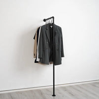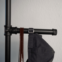 Gefertigt mit Hilfe unserer Rohrklemmen lässt sich der Pin beliebig höhenverstellen. Du kannst also auch mehrere übereinander hängen. Damit wird deine Kleiderstange zu einem echten Platzwunder.